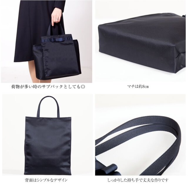 軽くて使い勝手の良い国産生地を使用しています。お受験スーツが映える上品な艶感にもこだわりました。お受験・面接はもちろん、学校訪問や入園・入学式など様々なシーンで幅広くご使用いただけます。A4サイズ対応なので大切な配布書類も安心して収納できます。