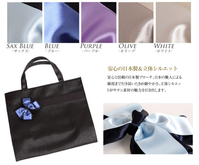 バッグやお洋服に付けてオシャレを楽しめるサテンの上品リボンブ