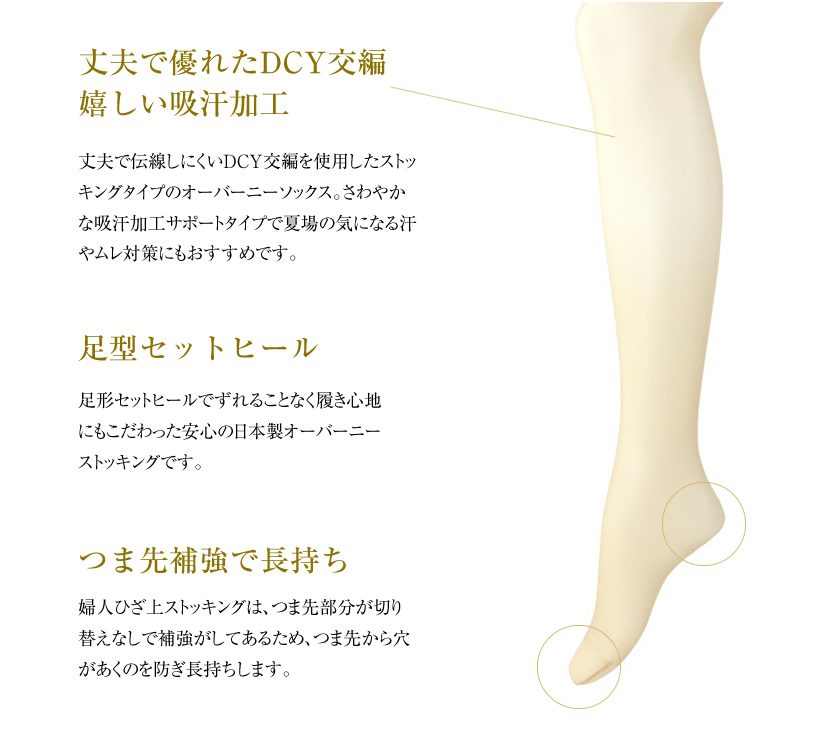 ナイガイ,オーバーニーストッキング,吸汗加工,夏,ストッキング,ハイソックス,パンスト,幅広ゴム,ソフト口ゴム,naigai,つま先補強【ブラック・ペールベージュ/22cm-25cm】【黒】【ベージュ】3005