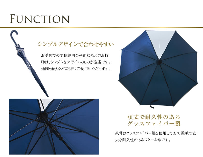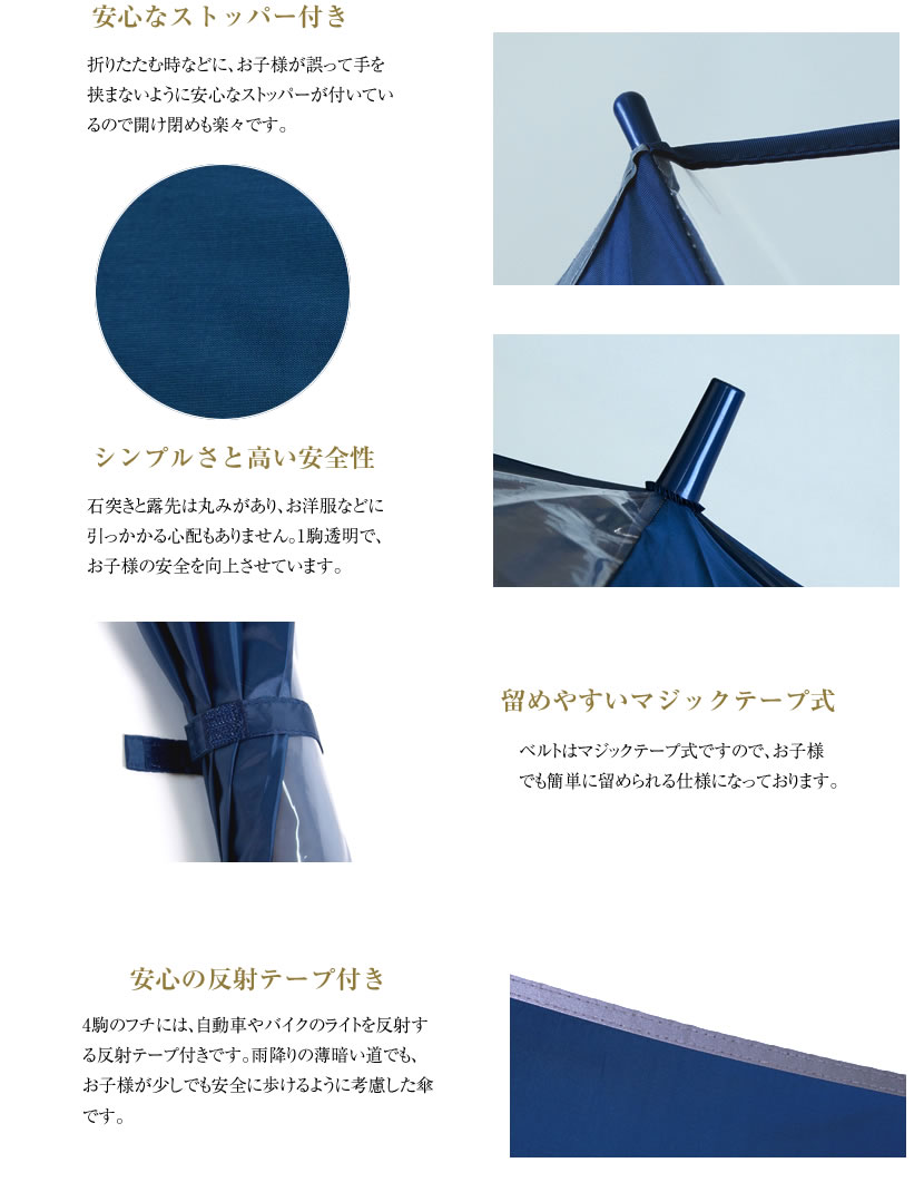 【スクール傘】反射テープ付きキッズ傘(学童傘,キッズ傘,スクール傘,紺色傘,お受験,通園,通学,グラスファイバー製,紺),337