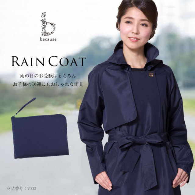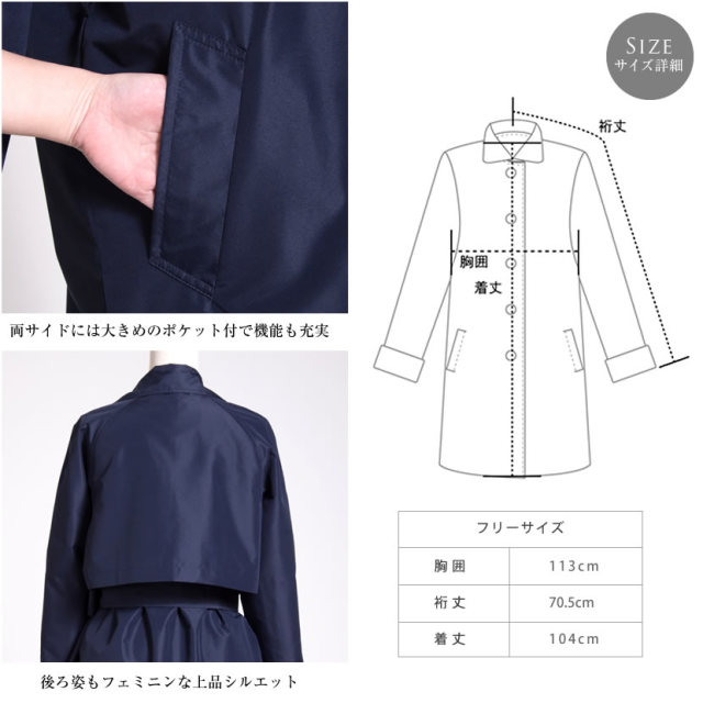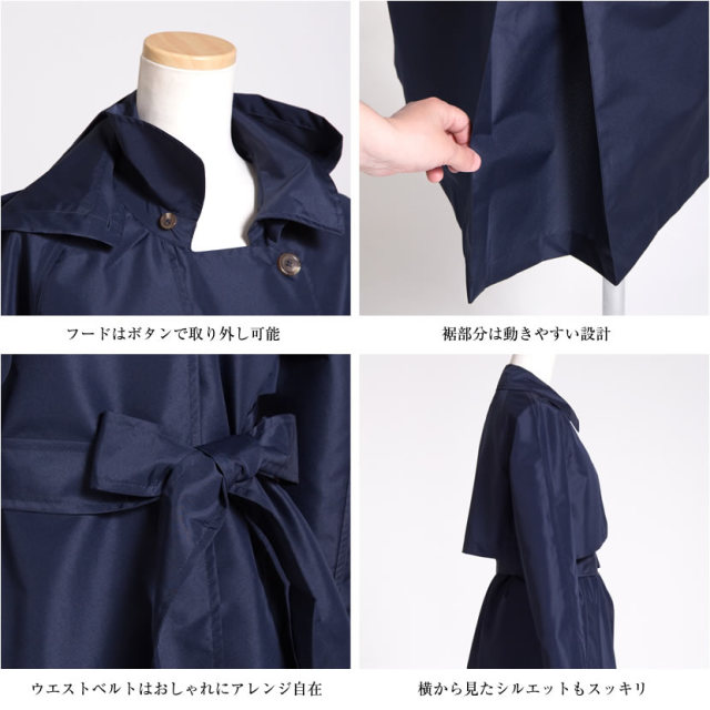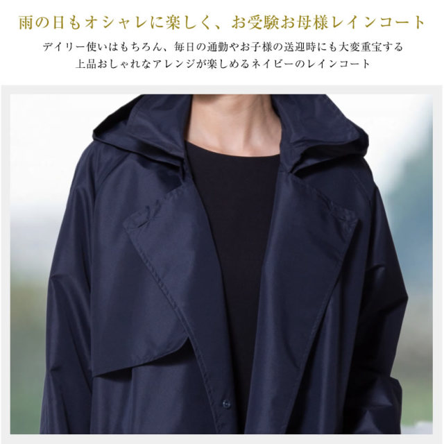 濃紺ガウントレンチレインコート (レイングッズ 雨具 カッパ お母様用 お受験 ネイビー 濃紺 トレンチ ガウン 上品 送迎 収納袋付 婦人合羽)7002
