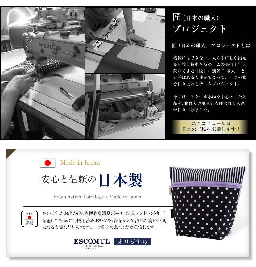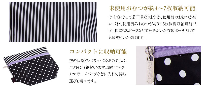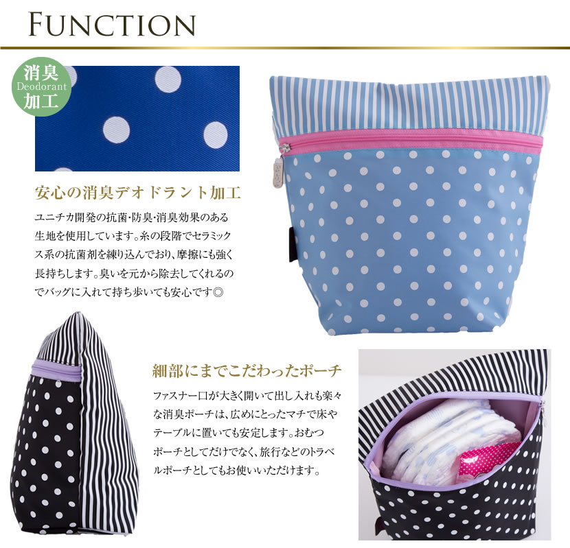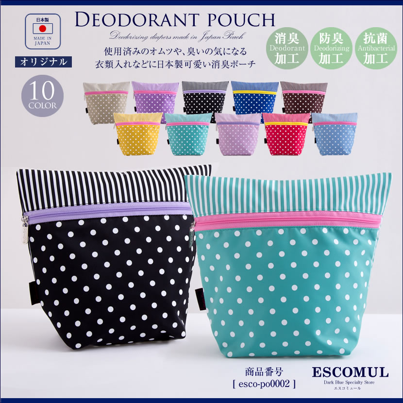 【 日本製 】 消臭ポーチ おむつポーチ 消臭おむつポーチ オムツポーチ ドットストライプ 体操服入れ,esco-po0002
