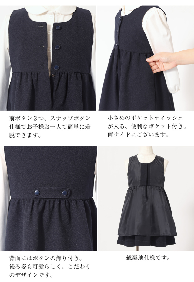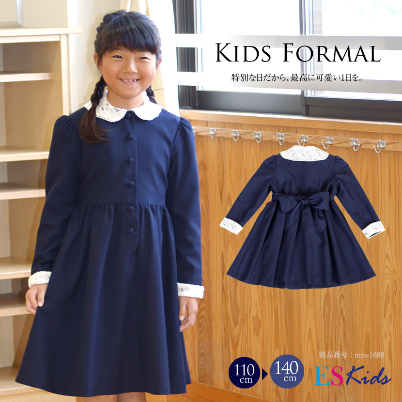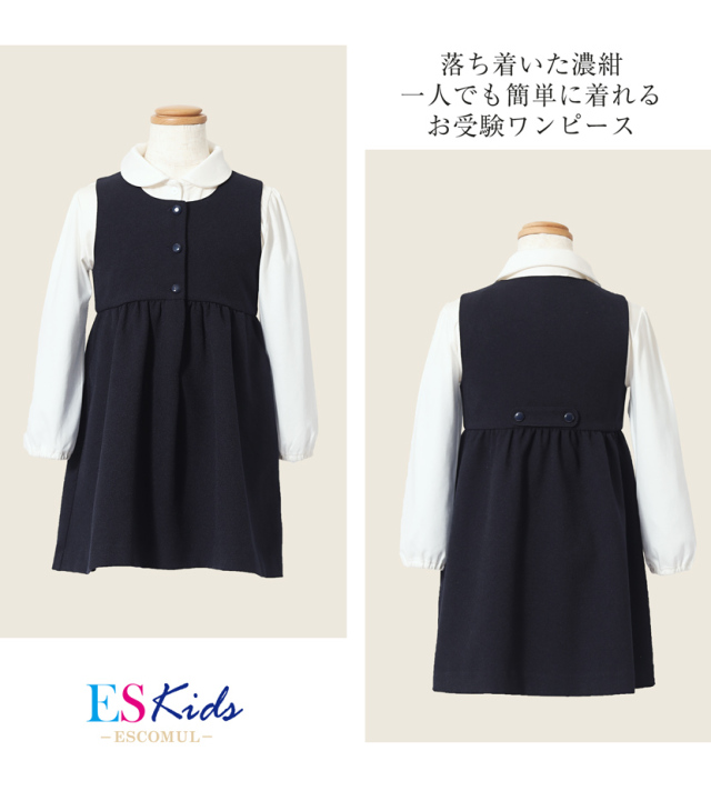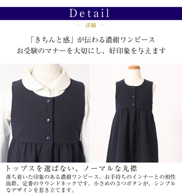 洗えるお子様用 濃紺ワンピース 【MM-1808-OP】[110cm,120cm,130cm][お受験,面接,冠婚葬祭,入園式,卒園式,入学式,発表会][紺]