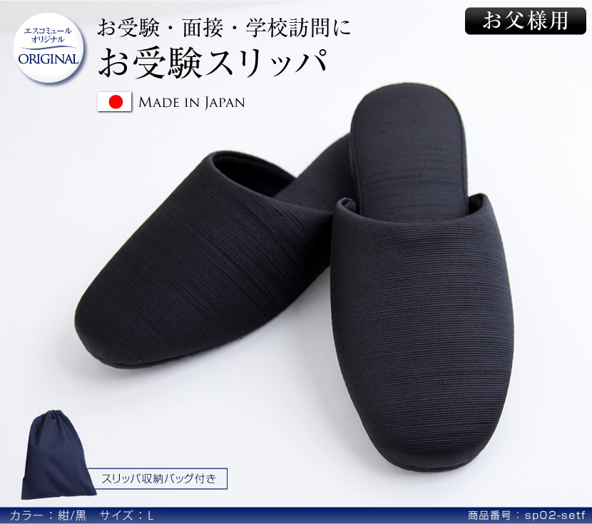 [お受験,学校説明会,授業参観]ヒールスリッパ【黒,紺】【L】【土日祝発送可】【お受験グッズ】【日本製グログランスリッパ・収納袋】お受験グッズ 2点セット男性用,sp02-setf