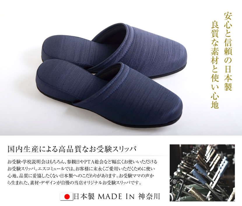 ジャストフィット型ヒールスリッパ【紺】【S,M,L】【土日祝発送可】【お受験グッズ】【日本製スリッパ・収納袋】お受験グッズ 2点セット,お受験,学校説明会,授業参観,sp04-set