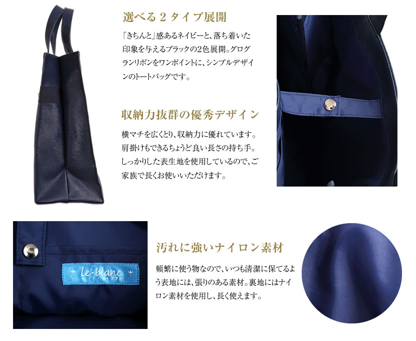 トートバッグ [ル・ブラン,le blanc,お受験,面接,学校説明会,学校訪問 親子兼用 男女兼用 ママ パパ][TOTE-01]【紺 黒】【お受験グッズ】【送料無料】