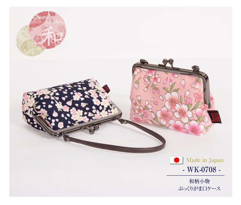 [和柄・モダン・日本製・がま口・ポーチ・ケース・小物入れ・小紋工房]小紋工房,和柄小物ぷっくりがま口ケース(2色)[wk-0708]